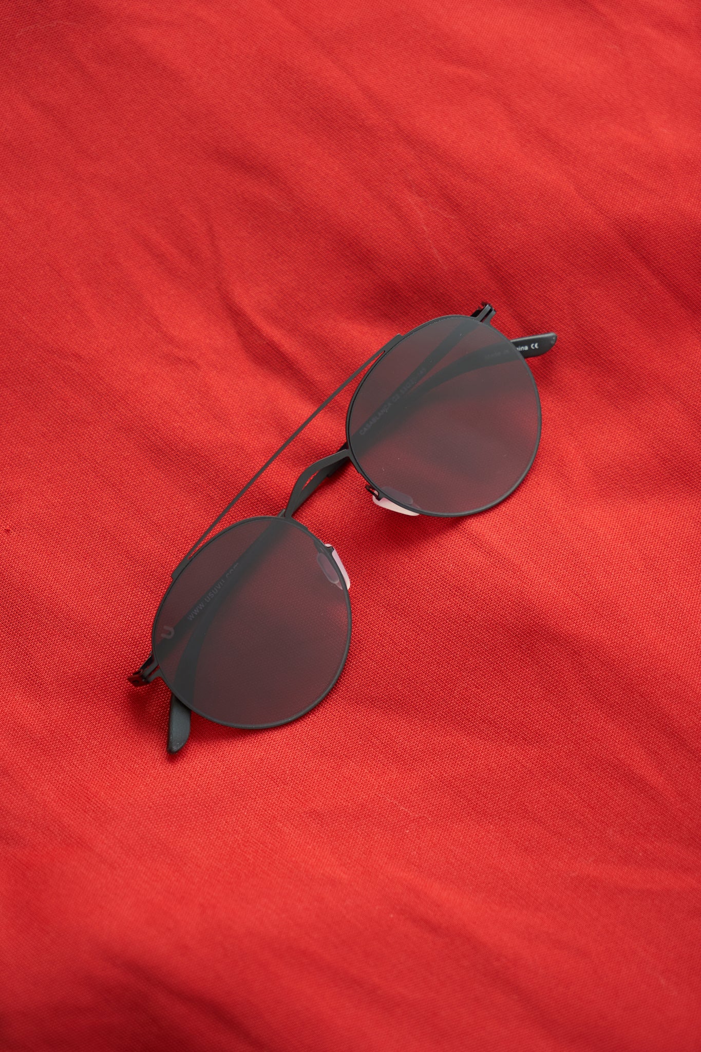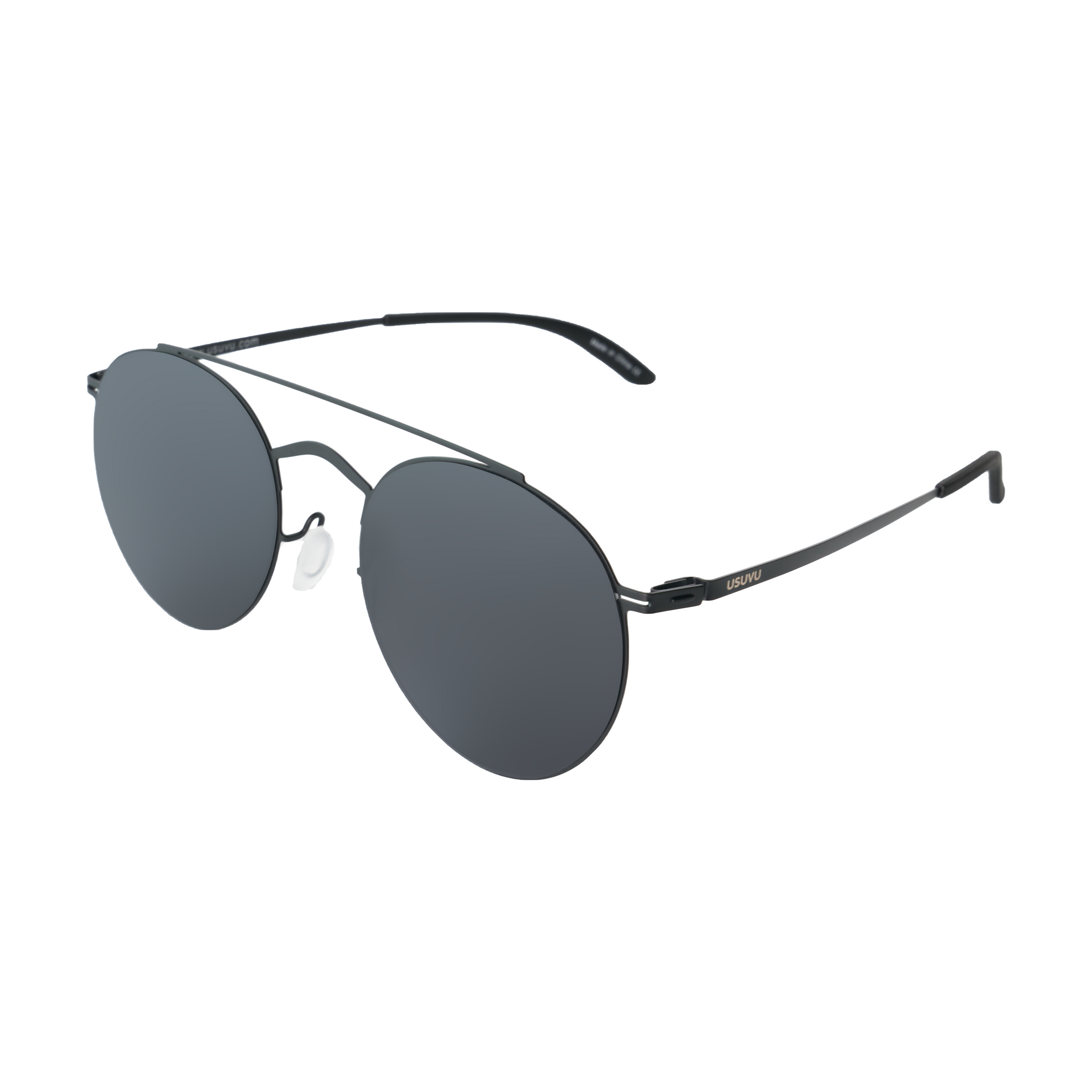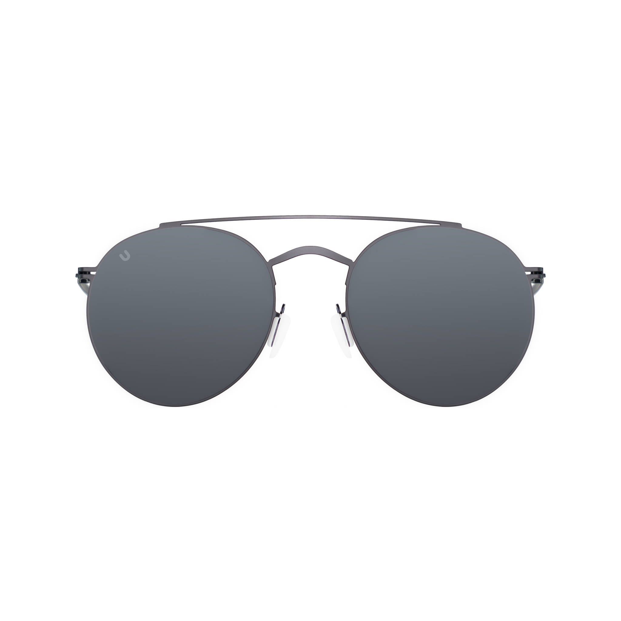 These rounded modern aviator sunnies feature mirrored lenses, a double bridge, adjustable nose pads and a metal frame.