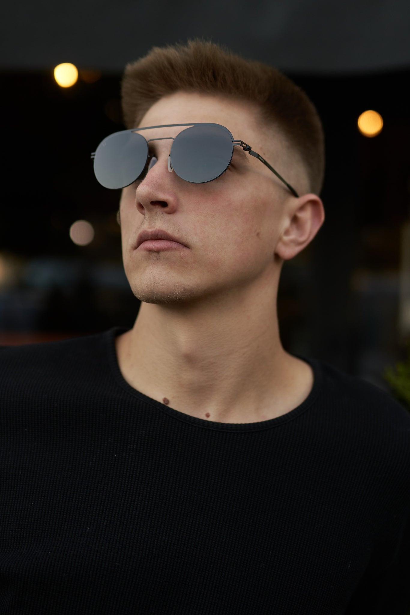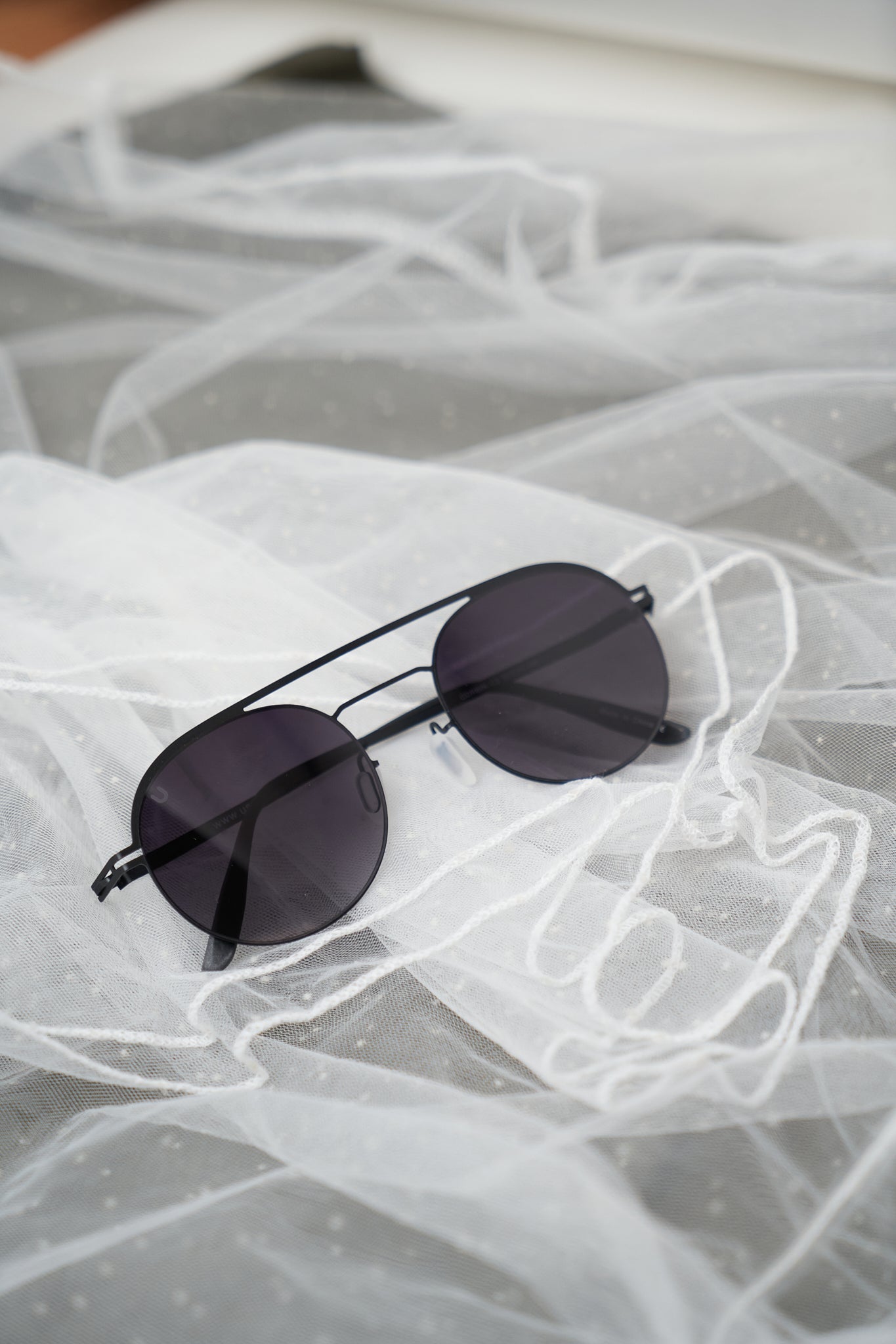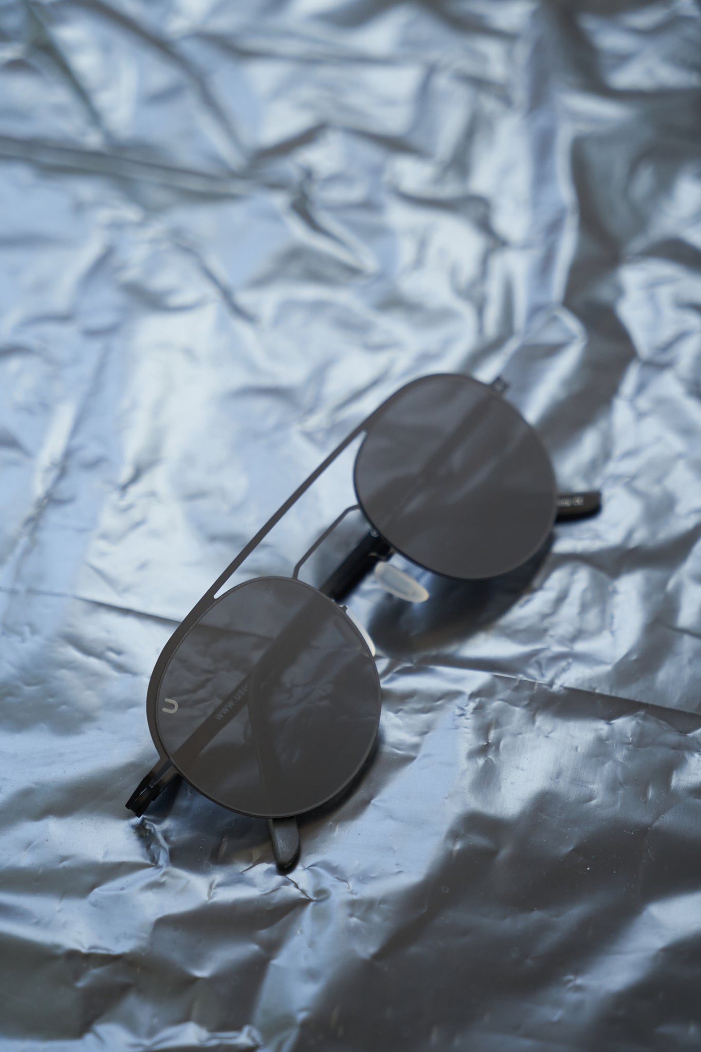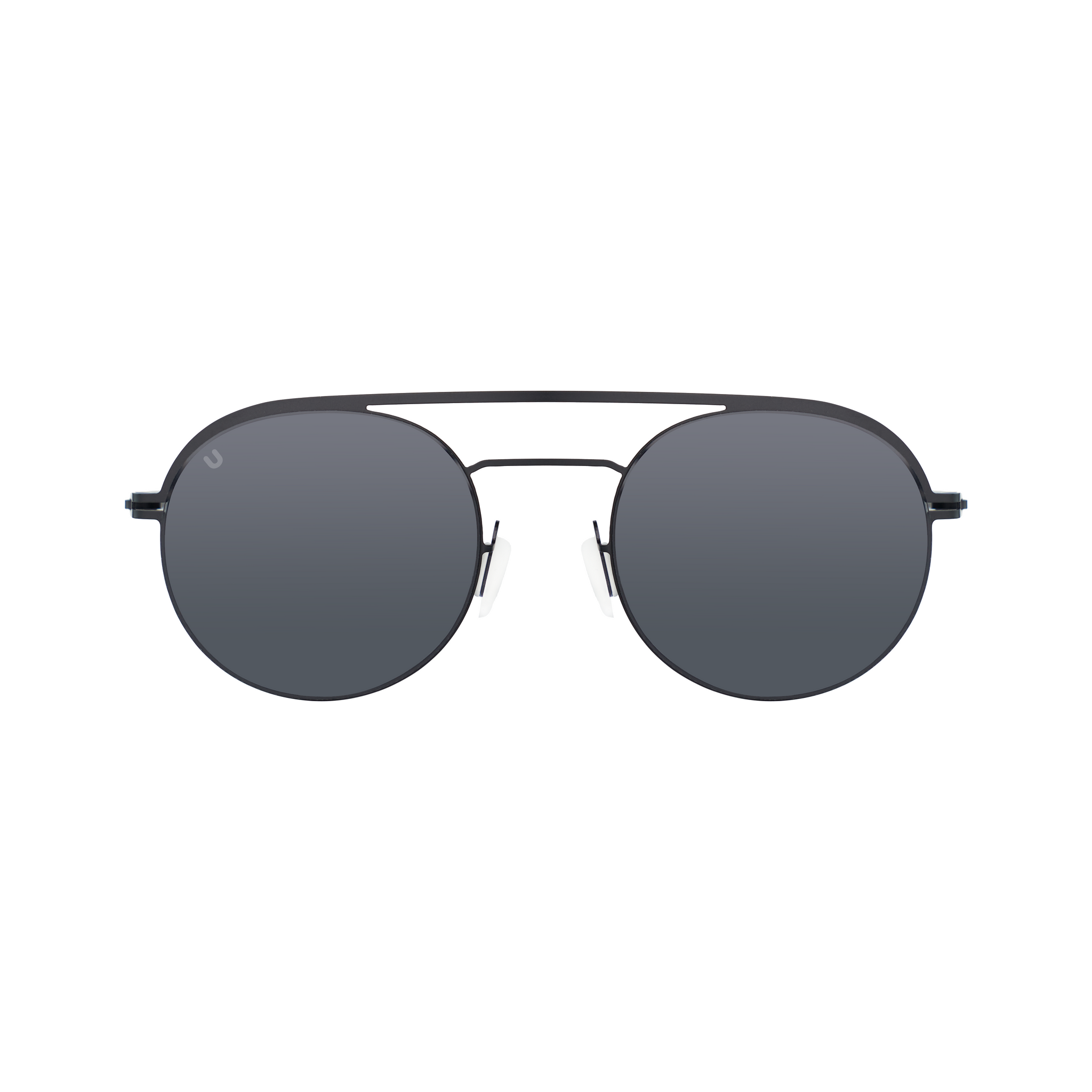 These rounded very light weight modern aviator sunnies feature smoke and mirrored lenses, a double bridge and a metal frame.